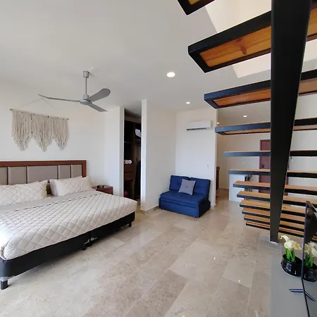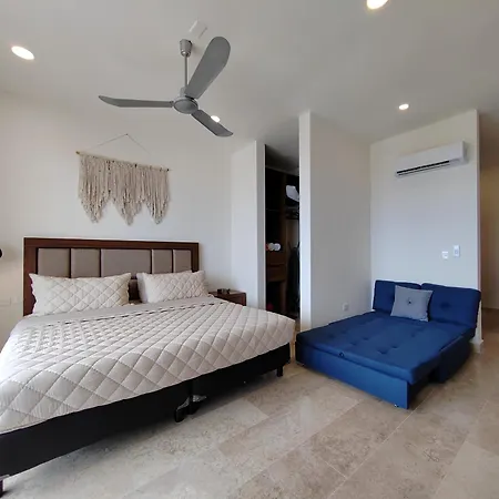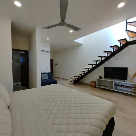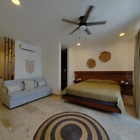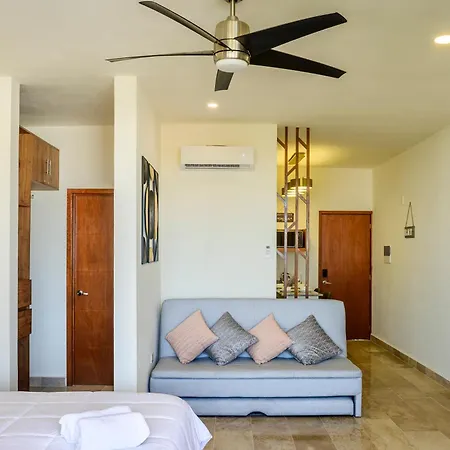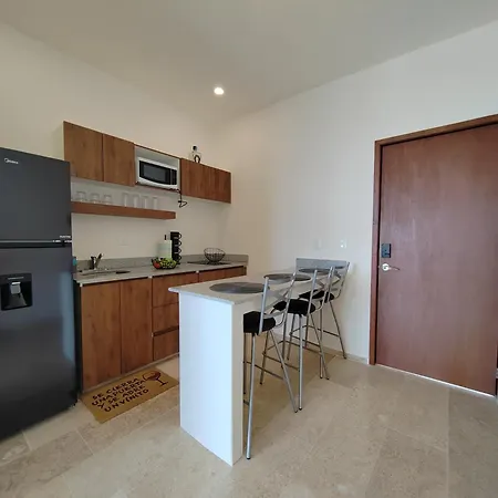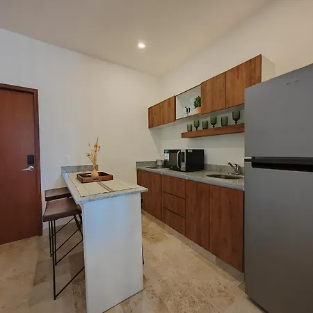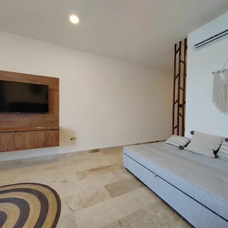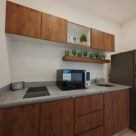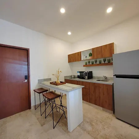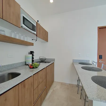 Es gibt auch eine Küchenzeile, in der einfache Mahlzeiten zubereitet werden können. Vom Flughafen Playa del Carmen sind es ca. 10 Minuten mit dem Auto zum Apartment.